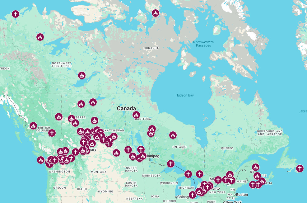 Something I discovered as I followed the conversation on line after watching Lawton’s viral post was that Juno News, an independent media outlet, has mapped all 123 churches across Canada that have been vandalized, burned to the ground, or defaced.