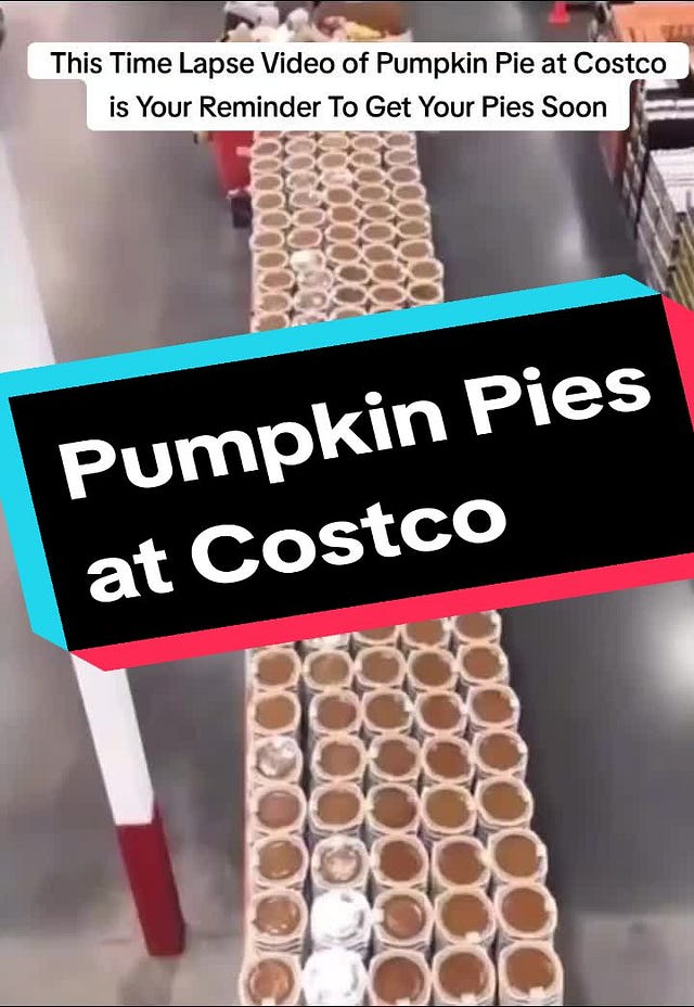 This year I bought my pumpkin pie from another outlet, but it was fun to see a time lapse of Costco’s famous (and massive!) pumpkin pies fly off the shelves. Imagine selling something that moves so quickly, what an entrepreneur’s dream!