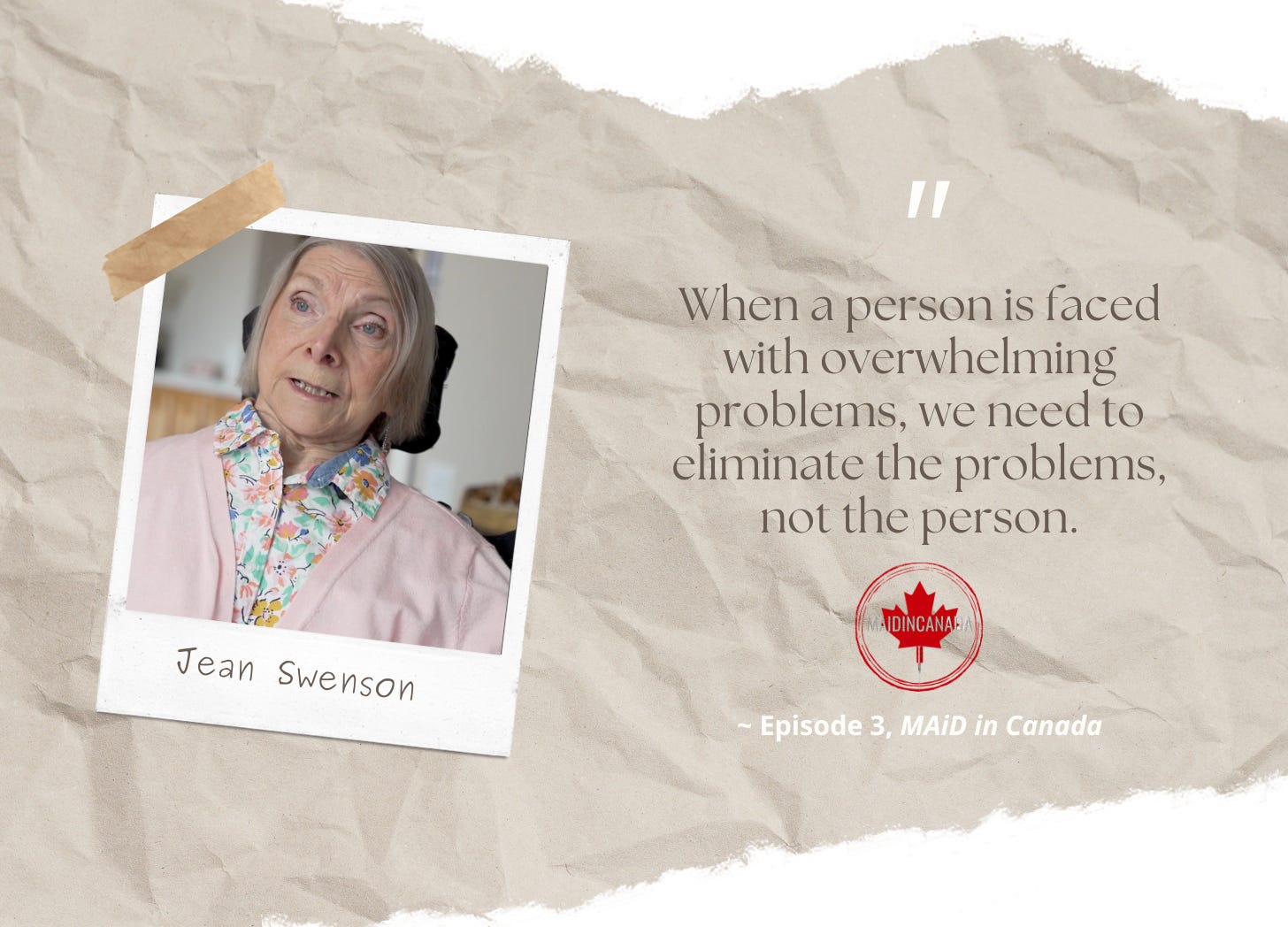 We're grateful Jean Swenson bravely shares her story and her concerns with assisted dying laws in Canada in episode three of MAiD in Canada, which I hope you’ll watch and share with a friend.