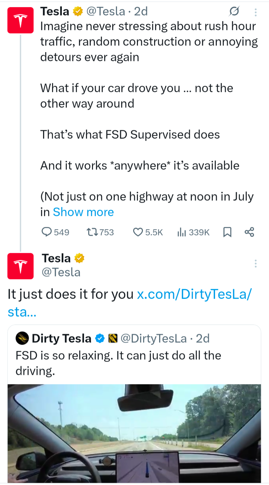 A few weeks ago, I noticed on X the stat that only 10% of drivers use the feature, because it's $99 a month. Musk responded to the user’s post directly, now we're seeing ads like this.