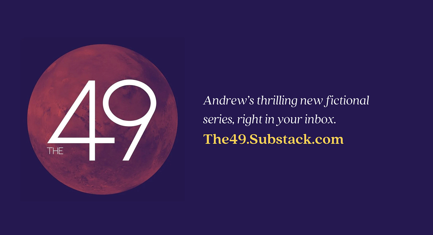 I’ve started to release a new fictional series called The 49. It reads like an action story ripped from tomorrow’s headlines. It’s a high-tech, high stakes thriller set in the not-too-distant future.